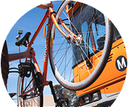 Most transit agencies in Southern California accommodate bikes on buses and trains. Each agency has rules for bikes on transit, so be sure to check with your transit provider before taking your trip. You can also take your bike on Metrolink, the region’s commuter train system. If you board with your bike, please use the bicycle latches located on the opposite end from the train’s restroom in each car to secure your bicycle. Motorized or 3-wheel bikes are not allowed, and note there’s only room for two bicycles per train car. Los Angeles County Metro welcomes bikes on rail and bus services. Bicycles are allowed on Metro Rail with some restrictions during peak hours. Bicycle racks on Metro buses are available on a first-come, first-served basis. If you leave your bike on a bus, please check the Metro Lost & Found to retrieve it. Learn more about bikes on Metro Rail and bus services. |